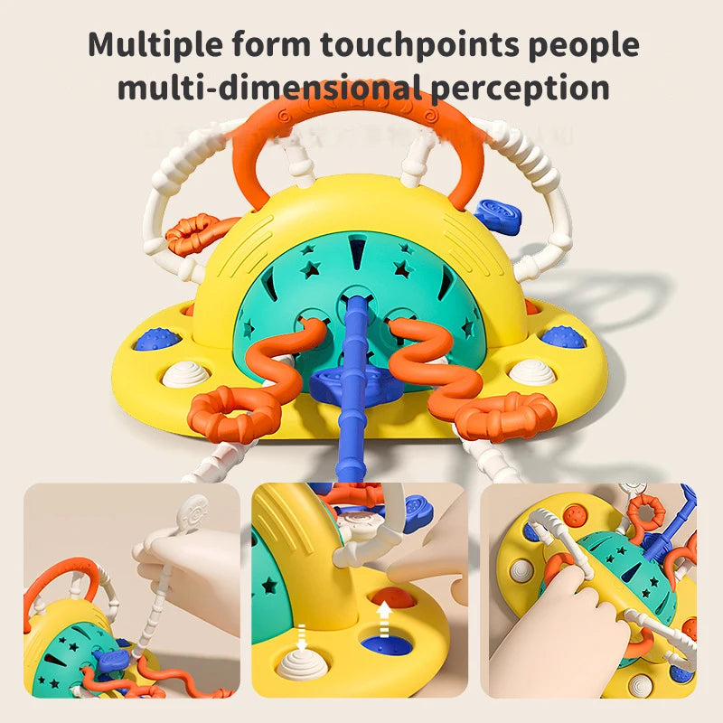 Every good play moment starts with you feeling comfortable about what’s in front of your child. This pull-string toy combines soft, food-grade silicone strings with a dome-style body and suction base so everything stays in one place instead of rolling off the table.